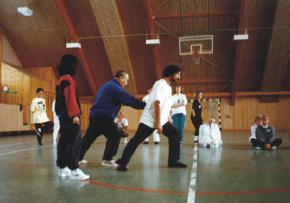 H ier sieht man Eva mit mir auf einem Lehrgang in Schweden, den Meister Yang Zhenduo mit Enkel Yang Jun (rechts) im dortigen Yang-Chengfu-Center unter der Leitung von Therese Teo Meimei (links) leitete.
