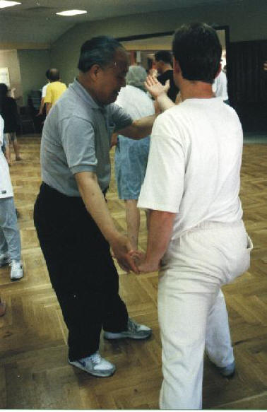 Eine meiner besten Schülerinnen, Eva aus Hamburg-Othmarschen, folgt hier dem Wunsch von Meister Yang Zhenduo, eine Sequenz aus der Tai-Chi-Form vorzumachen. Meister Yang war sehr beeindruckt - und ich sehr stolz auf meine Lehrer-Qualitäten.