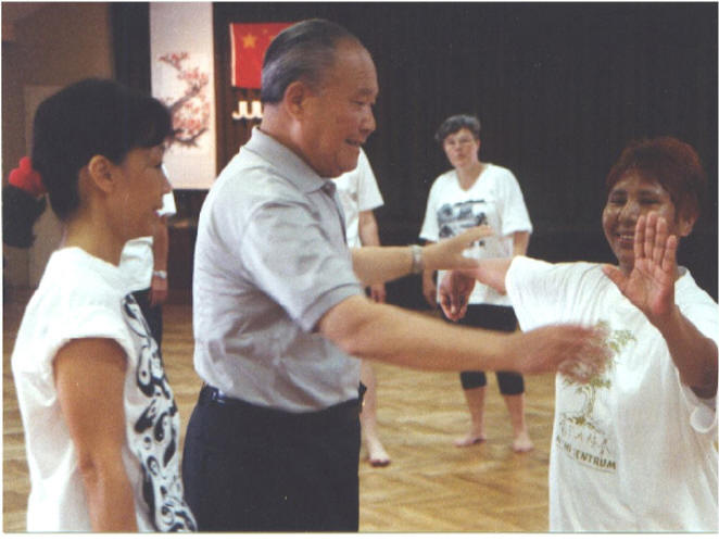 Einer meiner Lehrer, Meister Yang Zhenduo gibt in einem Sportverein einer Schülerin von mir Instruktionen zum Qi-Fluss. Quelle: Qi